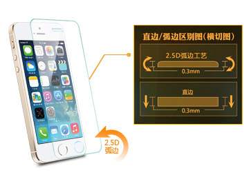 超薄體驗、2.5D導角工藝:采用0.3mm或0.2mm的鋼化玻璃,邊緣四周及按鍵孔采用2.5D弧邊倒角工藝,直邊的鋼化膜邊緣是自然直角,與普通玻璃邊緣一樣,弧邊的玻璃膜采用進口設備進行倒邊處理,經過多道特殊工藝而形成,操作更舒適,手感更柔和。